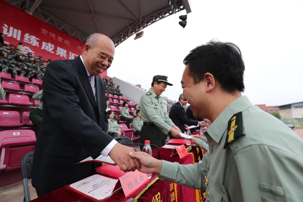校党委书记刘东志发表了热情洋溢的讲话,他充分肯定了参训人员的训练成果,高度评价了本次军事技能训练的育人效果。寄语新同学要立德明志,涵养家国情怀,以军训为起点,扣好人生的第一粒扣子,把军训期间的收获转化为拼搏的力量,把个人的追求融入国家的理想,脚踏实地,坚持不懈,做新时代的奋斗者,早日成为国之栋梁;要严于律己,学有所成,以新时代军人为榜样,自觉遵守校纪校规,发扬新时代军人吃苦耐劳,敢打敢拼的品格,一丝不苟,追求卓越的作风,把主要精力投入到学习科研中,在知识的海洋中乘风破浪,做到学有所成,学有所用,让自己的芳华绚丽多彩;要延续精神,传承和创造新葡萄之美,以退役大学生军训教官为标杆,继续发扬军训中学习到的好思想、好作风、好品格,弘扬“重德重能,求实求新”的校训,秉承“求真务实、艰苦奋斗、开放包容、创新进取”的新葡萄精神,去传承和创造新葡萄之美、新葡萄故事,新葡萄更加美好的明天。