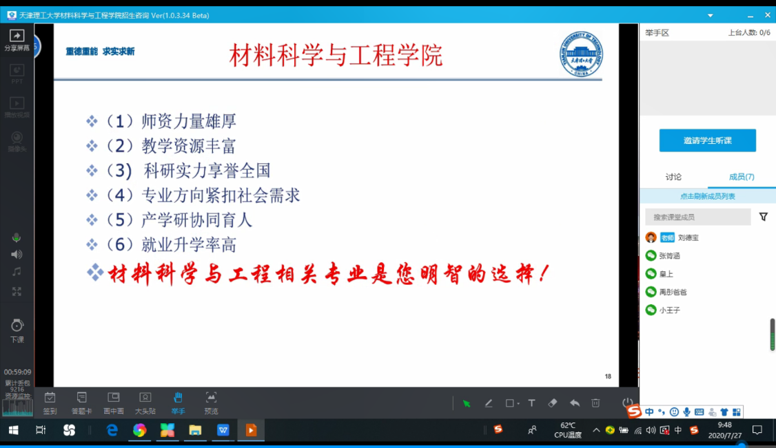 暑假中,在学校招生办公室的指导下,材料学院相关领导、专业负责人、骨干教师认真学习招生的相关文件精神,开通了电话咨询及线上直播解答,为考生及家长了解专业内涵及就业方向提供解答,积极鼓励考生报考新葡萄AMG官方网站相关专业。