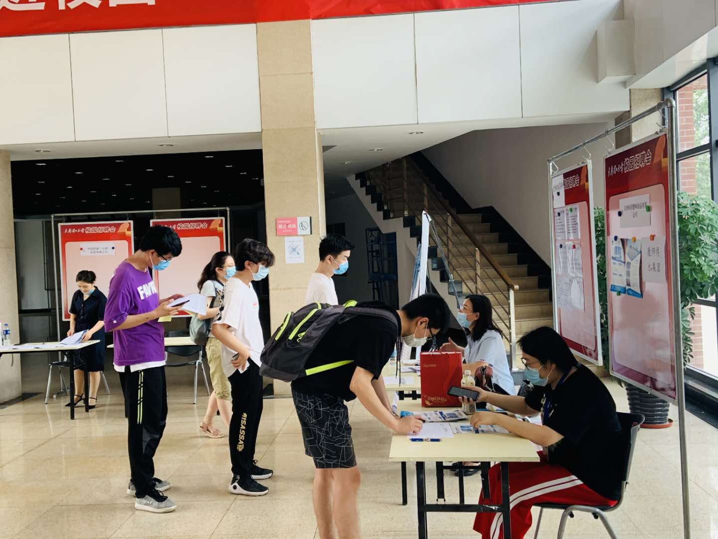 6月17日至18日,新葡萄分别联合西青区人社局、北方人才举办了春季学期两场2020届毕业生线下招聘会,共吸引了41家企业来校揽才。此次线下招聘会严格按照新冠肺炎常态化防控要求举办,会前制定防疫方案,严格控制入校企业数量和企业属地,疫情高风险地区用人单位不得入校,来校单位进入校园需提供个人健康绿码和健康承诺书并遵守学校防控措施规定。