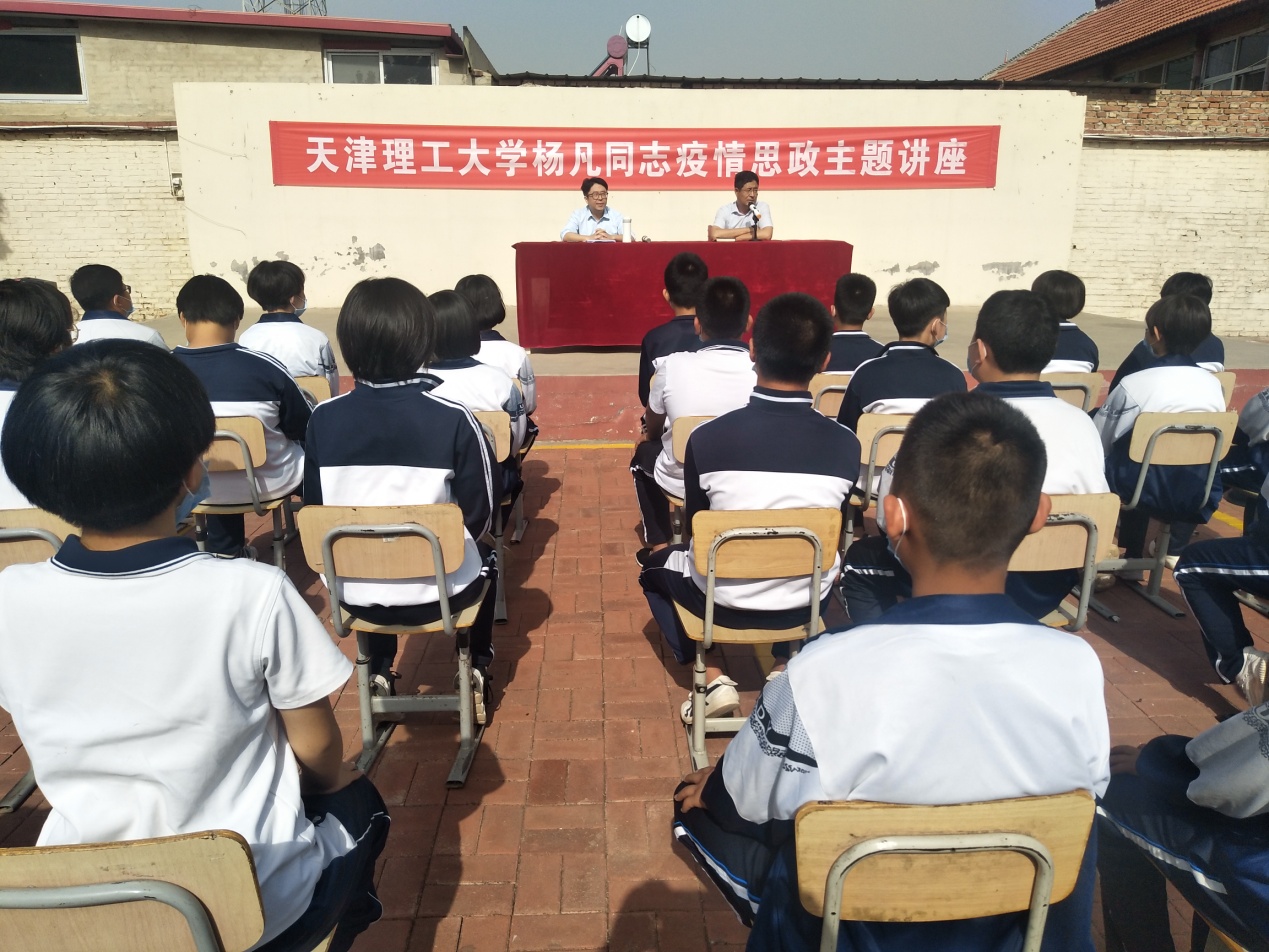 受新葡萄大中小幼思政课一体化建设联盟单位、天津市蓟州区下窝头镇初级中学的邀请,6月3日上午,新葡萄马克思主义学院杨凡赴该校开展抗击疫情思政主题讲座。下窝头镇初级中学校长吴红伟主持,学校师生约300人聆听讲座。