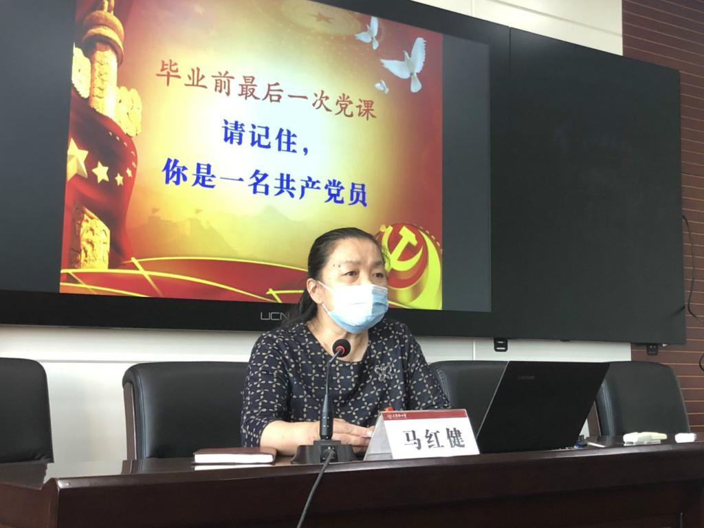 举办“最后一堂党课”。学院党委书记为2020届本科生毕业生党员做题为《请记住,你是一名共产党员》的最后一次党课,结合疫情防控,从制度优势切入,指出疫情就是课堂,疫情防控取得的重要阶段性成果,是中国共产党团结带领全国人民万众一心、众志成城、艰苦努力的结果,是中国特色社会主义制度优越性的集中体现。随后,她从入党是一生的政治选择、中国共产党党员应该是什么样的人以及毕业生党员要永远不忘初心三个方面,深入浅出地为毕业生党员上了一场精彩生动的党课。