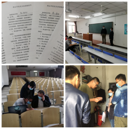 学院召开党委会,研究部署《通知》要求;制定、组织党员签订《海运学院党员承诺践诺书》,明确责任、履职践诺;党员教师对学生进行专业复课动员、课堂教学、毕业论文指导、适任证书考试辅导答疑,做不忘初心、牢记使命的践行者;组织学生党员带头做好个人日常防护、宿舍卫生、课堂秩序、舆论引领,发挥模范带头作用。