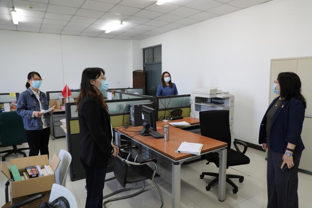 5月11日上午,在管理学院党委的带领下,管理学院教师党员突击队深入学院各系办公室和实验室,检查防疫工作部署情况,嘱咐通风和消杀的相关事宜,并分发防疫物资。各系导师们也分批分次地组织已返校的毕业班学生进行面对面的毕业论文指导,总体教学秩序井然、防疫部署得当。