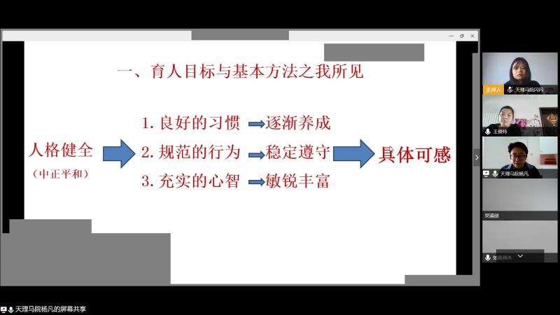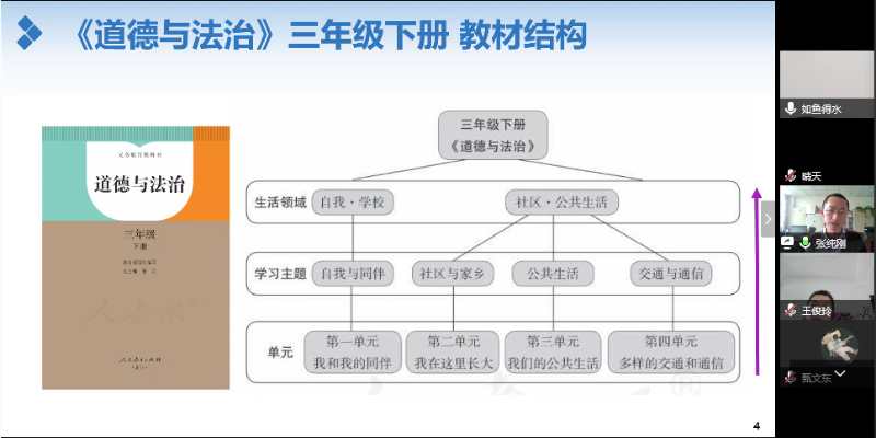 针对小学思政课教学资源相对薄弱的实际情况,新葡萄杨凡、张纯刚和邢巍巍三名老师围绕小学《道德与法制》课程,分别从宏观、微观层面展示各年级的思政教学方法,并进行案例介绍。