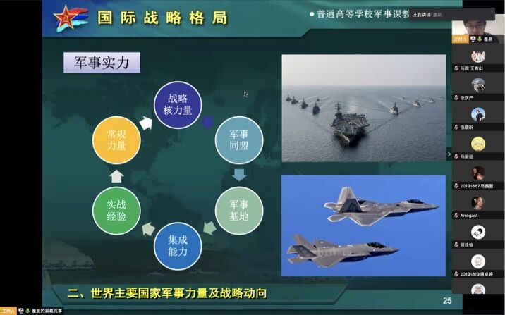 据悉,《军事理论》教学团队将进一步巩固线上授课教研成果,继续探索疫情期间将课程思政与实践教学相结合的方法,通过布置学习论文、实践报告的方式,活化军事课教学效果。紧密围绕立德树人的根本任务,让军事课体现出应有的政治特色、学科特点、思政内涵。