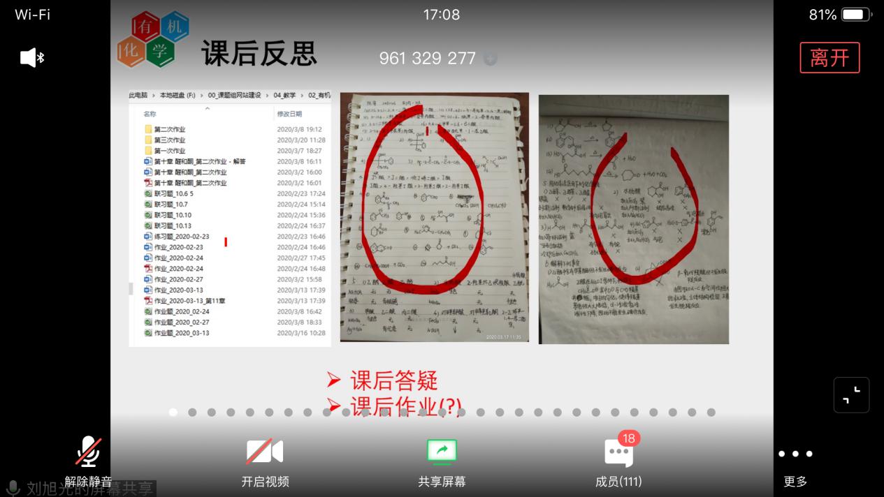 化学化工学院刘旭光老师《有机化学》课程的学生作业