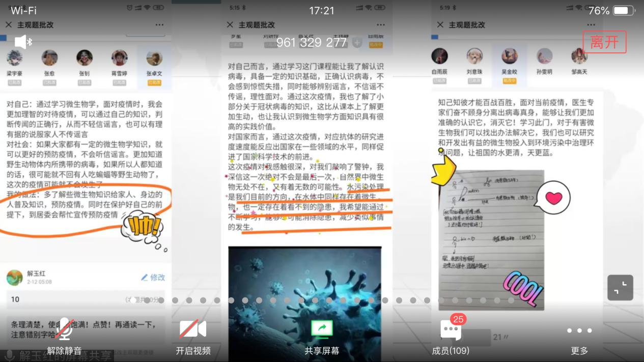 疫情防控期间,教师们结合专业知识开展课程思政建设,对学生进行生命教育。教师田华在《工程材料及其形成前沿》课程中,介绍了本次抗击疫情中所使用的多种新型材料,增强学生学习兴趣,帮助学生建立职业理想。环境科学与安全工程学院教师解玉红就微生物学学习与疫情防控布置随堂作业,引发学生热烈讨论。