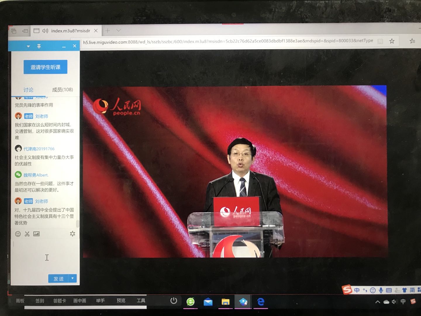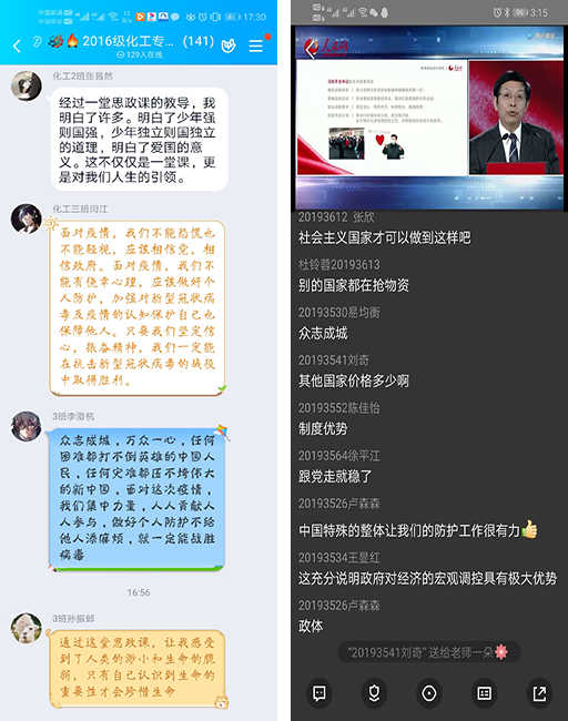 广大新葡萄师生积极响应,思政理论课教师组织学生们纷纷通过电脑、手机相聚云端,聆听这场特别的思政课堂,并通过QQ群、微信群、网络会议平台展开热议,分享彼此的听课感受。