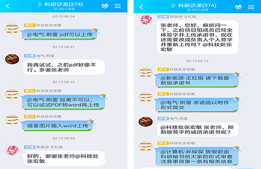 针对需要线下统一报送的材料,科技处工作人员前期对注意事项、填写重点、可能存在的问题,向教师提供实时在线解答。报送前,提前收取电子版本,对形式进行审查和意见反馈。确保符合要求后,由科技处统一打印胶装,盖章报送,减少人员接触和聚集,降低疫情传播风险。