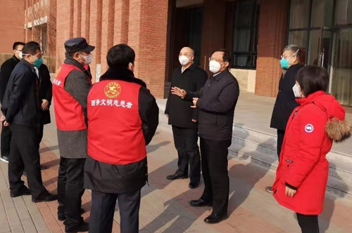 1月31日,市教委副主任孙慧玲,西青区政协副主席孙继光、李寿强分别到校指导检查新型冠状病毒感染的肺炎疫情防控工作。校领导刘东志、杨庆新、郭滇华、杜长有、郑清春、张继东陪同。