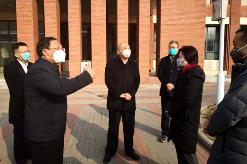 党委书记刘东志向到校指导检查的领导介绍了学校师生的摸排情况、防控工作的具体措施、临时隔离观察点的改造和防控物资储备情况。