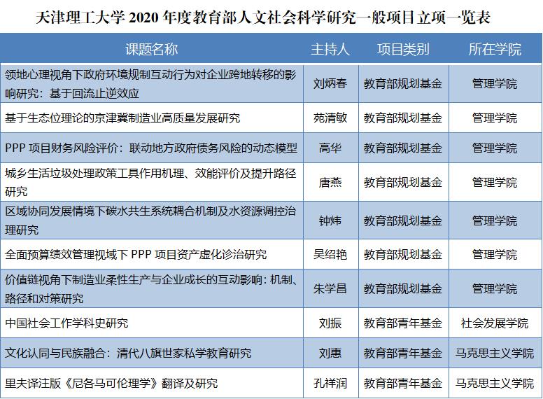 日前,2020年度教育部人文社会科学研究一般项目评审结果公示。新葡萄共有10项课题获准立项,其中规划基金6项、青年基金4项,在全市高校排名中位列第三,实现历史性突破。