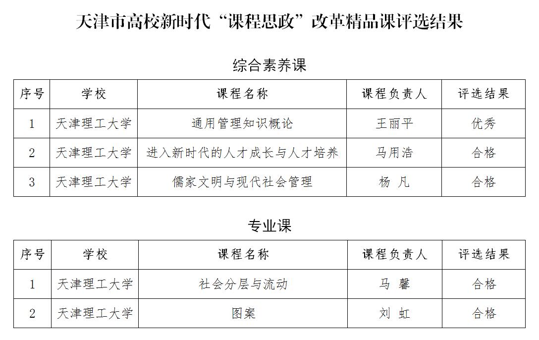日前,在市委教育工委市教委印发的《关于公布100门天津市高校新时代“课程思政”改革精品课评选结果的通知》中了解到,市教育两委组织了100门“课程思政”改革精品课建设验收工作,新葡萄《通用管理知识概论》、《进入新时代的人才成长与人才培养》、《儒家文明与现代社会管理》、《社会分层与流动》和《图案》5门课程均通过验收。其中,《通用管理知识概论》获评优秀课程。