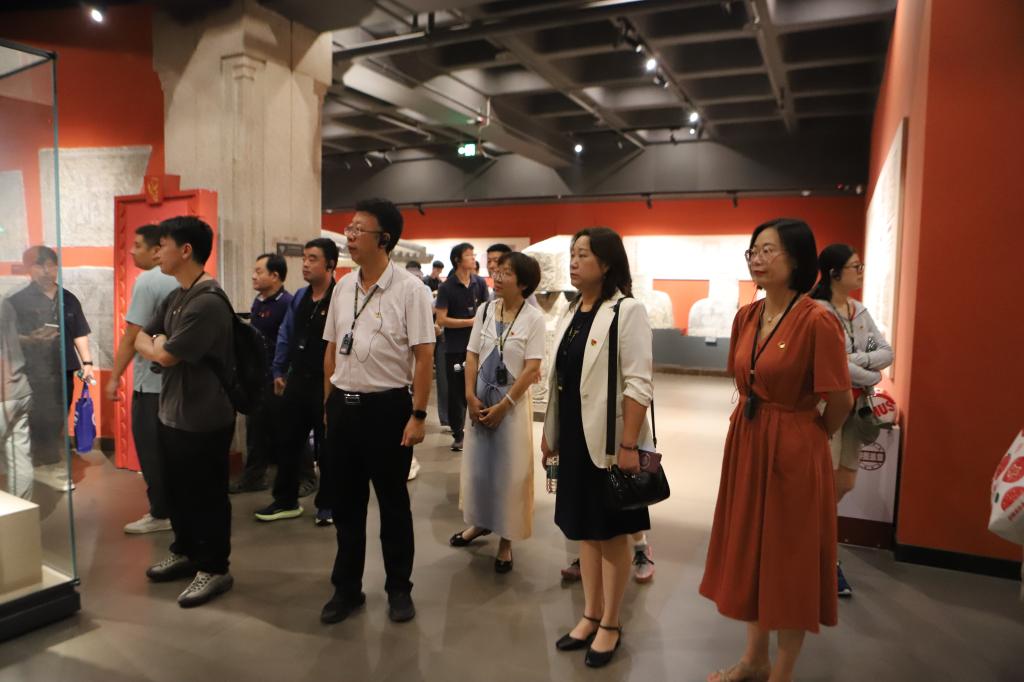 教师党员前往淮海战役烈士纪念塔,向淮海战役中英勇献身的革命烈士们默哀并敬献花圈。在“最后一碗米送去做军粮”等支前故事前,深切感受“人民的胜利”中蕴含的无穷力量,进一步激发大家的家国情怀和奋进力量。教师党员前往徐州博物馆和徐州汉画像石艺术馆廉洁教育站点,在感受彭城文化传承的同时,进一步增强廉洁意识。