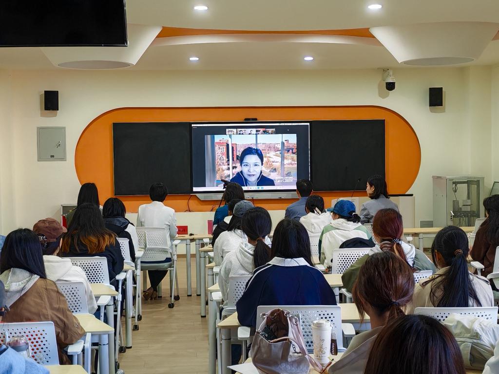 会上,国际交流处负责同志表示,“1+2+1”项目是拓展学生全球视野的重要载体,为社工专业人才培养注入国际动能。学院负责同志与学生们交流了如何兼容社会工作学科的本土性与国际性;美国威斯康星大学欧克莱尔分校在跨文化社工实践、社区协同育人领域经验深厚,学院在老龄化服务、乡村振兴社工支持等领域具有特色,双方合作是“优势互补、理念互鉴”的深度联动。学院负责同志鼓励新生积极参与项目。吴琴为大家系统解读“1+2+1”双学位培养模式。美国威斯康星大学欧克莱尔分校教师分别以“多元文化学习社区”“跨文化社会工作实务”为题为同学们展开详细介绍。中国教育国际交流协会项目负责老师为同学们详细讲解项目落地细节。在互动环节中,围绕同学们提问的问题,中外嘉宾进行逐一解答。