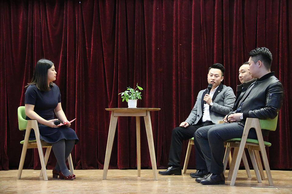 开幕式后,“E脉相传”第一期校友沙龙系列活动——校友访谈录正式开启。2008届校友院学生会主席张晟,2011届校友院学生会主席于永棡,2013届校友校学生会副主席倪文硕,重返大学舞台,与学弟学妹进行交流。三位学长感念母校的培养,能够受到邀请回到新葡萄非常激动,也希望能够在母校40岁生日之际,尽自己的微薄力量来回馈母校。张晟现任中国银行天津东丽支行技术经理,他结合在校自身求学、求职的职场经历,鼓励大家要掌握专业的核心技能,珍惜时间,做一些能够提升整体素质的学生活动,多一些奋斗,未来才会多一些选择;海鸥金服的创始人于永棡、倪文硕作为新葡萄创业校友的代表,他们讲述了从职场到创业者转换的心路历程,鼓励大家要拓宽知识面,了解跨学科的知识,做一个现代意义上的“杂家”,要从实实在在的行动出发,并且不局限于自己的小世界,真正实现“自我价值·荣校情怀·青年担当”。