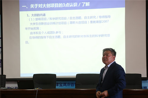 宣讲会上,李国刚教授系统地讲解了如何选题、如何立论、如何展开具体研究等内容,强调将“创新、创业、实践”这三个步骤作为大学生创新创业训练计划立项的根本指导思想,为有意参加“大创”项目的同学提供了可借鉴的方法、路径及可供选择的研究方向,有效地解答了同学们在“大创”中遇到的种种疑惑。