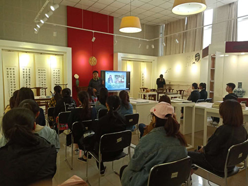 刘老师用专业的理论知识、大量的实物作品勾勒出诗书画印的内在联系和知识框架;结合汉字背后的文化故事,带领同学们领略汉字之美,礼敬中华文化。刘老师讲到汉字中蕴含中华五千年的独特魅力,作为汉语言文化专业的学生要有学好中华文化的信心和传承发扬中华文化的信念。在平日里自觉开展“学思想、诵经典、树家风”的学习,坚定文化自信,传播中国好声音。