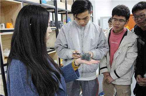 期间,郭亮与企业负责人陪同学院师生参观了3D打印量化生产线,介绍3D打印的工艺要求和行业发展现状。随后,师生现场体验了建模设计和机器操作等主要生产环节。双方通过深入沟通交流,初步达成共建校外双创基地的合作意向。企业负责人表示,在母校的学习时光是人生中最难忘的经历,现在自己愿意为母校的发展建设贡献自己的绵薄之力。