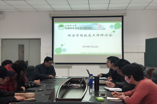 1月22日下午,环境科学与安全工程学院召开校友工作研讨会,学院全体党政领导、各系主任、行政工作人员、教师代表、校友代表参加。会议由学院党委副书记郭晓倩主持。