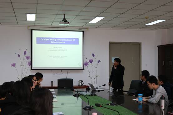 报告中,程庆进教授介绍了赋范空间中集合的多种紧性刻画的意义以及国内外的研究现状,并详细讲述了近期在空间集合超弱紧性方面研究的最新进展。程教授与到场师生进行了积极互动,大家纷纷表示通过此次报告会极大地开拓了在泛函分析中赋范空间的视野,激发了大家深入研究的兴趣。