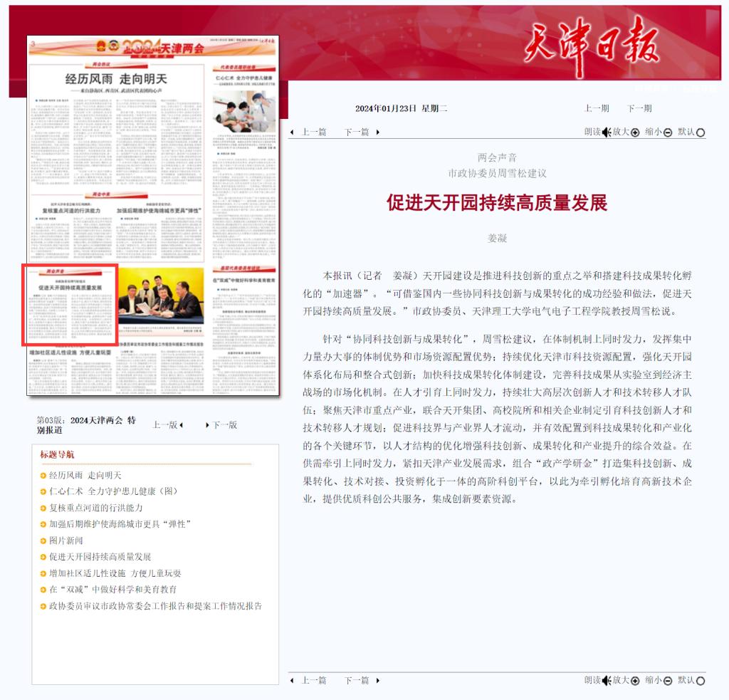 天开园建设是推进科技创新的重点之举和搭建科技成果转化孵化的“加速器”。“可借鉴国内一些协同科技创新与成果转化的成功经验和做法,促进天开园持续高质量发展。”市政协委员、新葡萄AMG官方网站电气电子工程学院教授周雪松说。