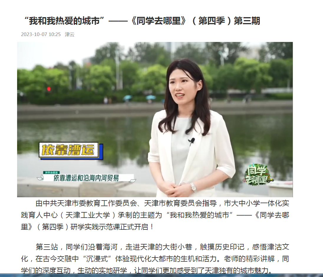 由中共天津市委教育工作委员会、天津市教育委员会指导,市大中小学一体化实践育人中心(天津工业大学)承制的主题为“我和我热爱的城市”——《同学去哪里》(第四季)研学实践示范课正式开启!