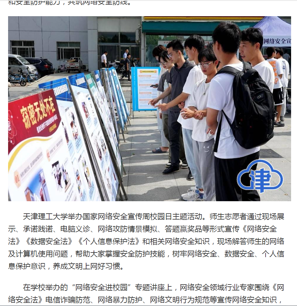 9月13日,津云报道新葡萄举办国家网络安全宣传周校园日主题活动。报道如下:
