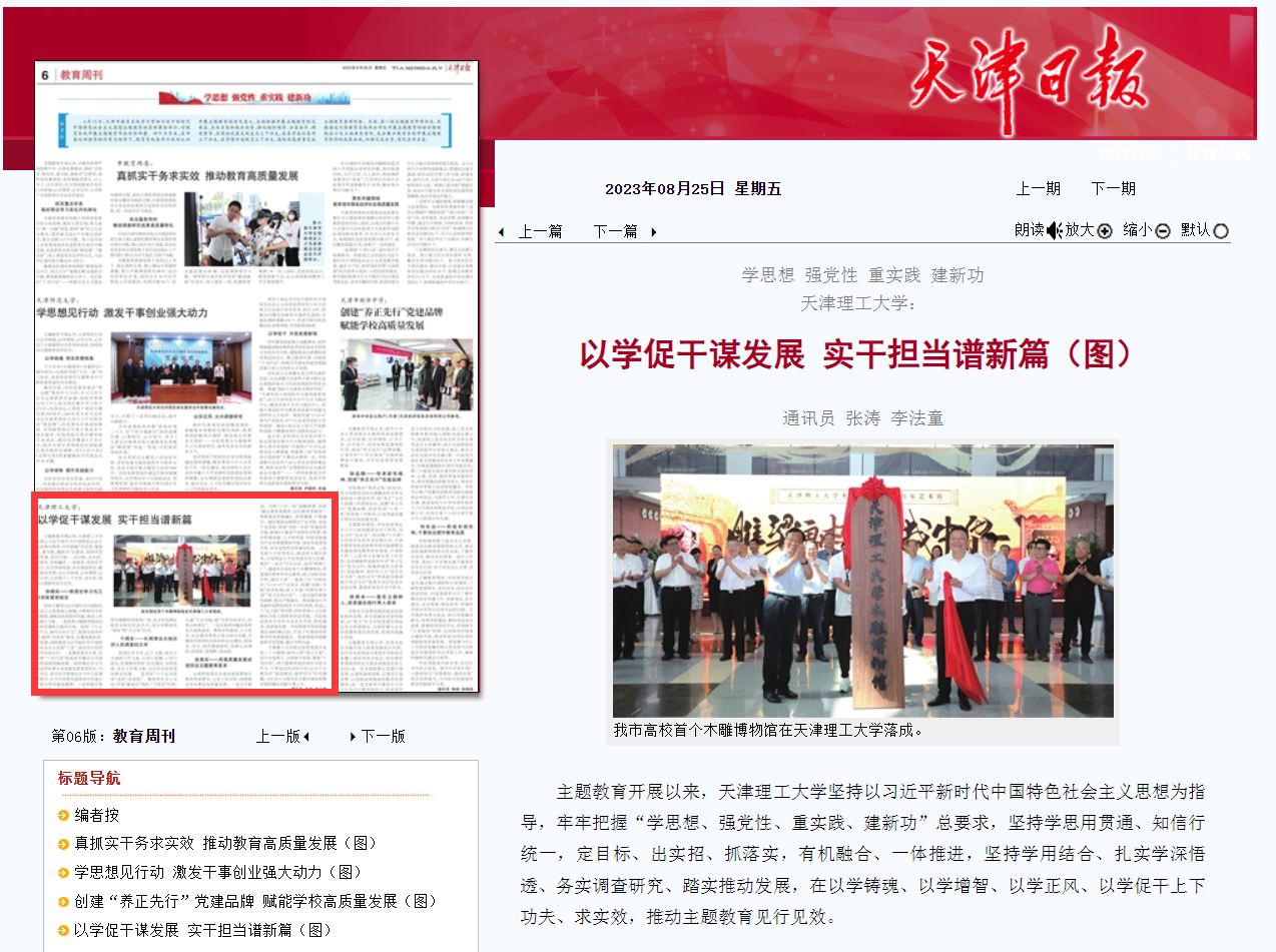 8月25日,《天津日报》以“以学促干谋发展 实干担当谱新篇”为题报道新葡萄主题教育经验做法,全文如下: