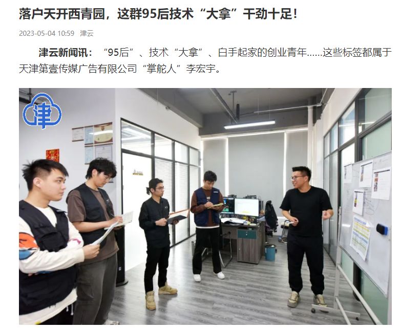 “95后”、技术“大拿”、白手起家的创业青年……这些标签都属于天津第壹传媒广告有限公司“掌舵人”李宏宇。