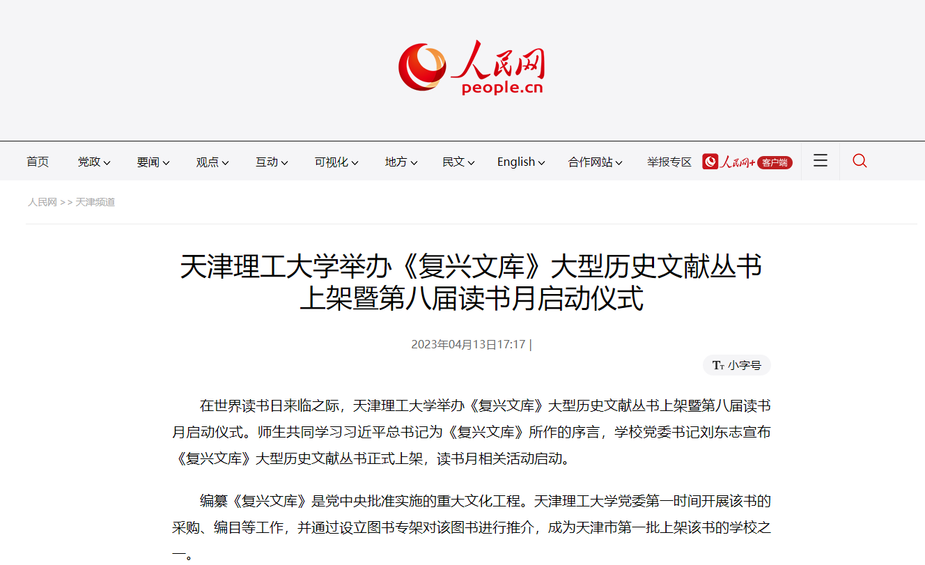 编纂《复兴文库》是党中央批准实施的重大文化工程。新葡萄AMG官方网站党委第一时间开展该书的采购、编目等工作,并通过设立图书专架对该图书进行推介,成为天津市第一批上架该书的学校之一。