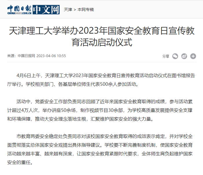 活动中,党委安全工作部负责同志回顾了近年来国家安全教育取得的成绩,参与活动累计超过4万人次,举办讲座50余场,制作视频节目30余部,为学校高质量发展提供安全支撑和环境保障,推动大安全理念落地生根,汇聚维护国家安全的强大力量。