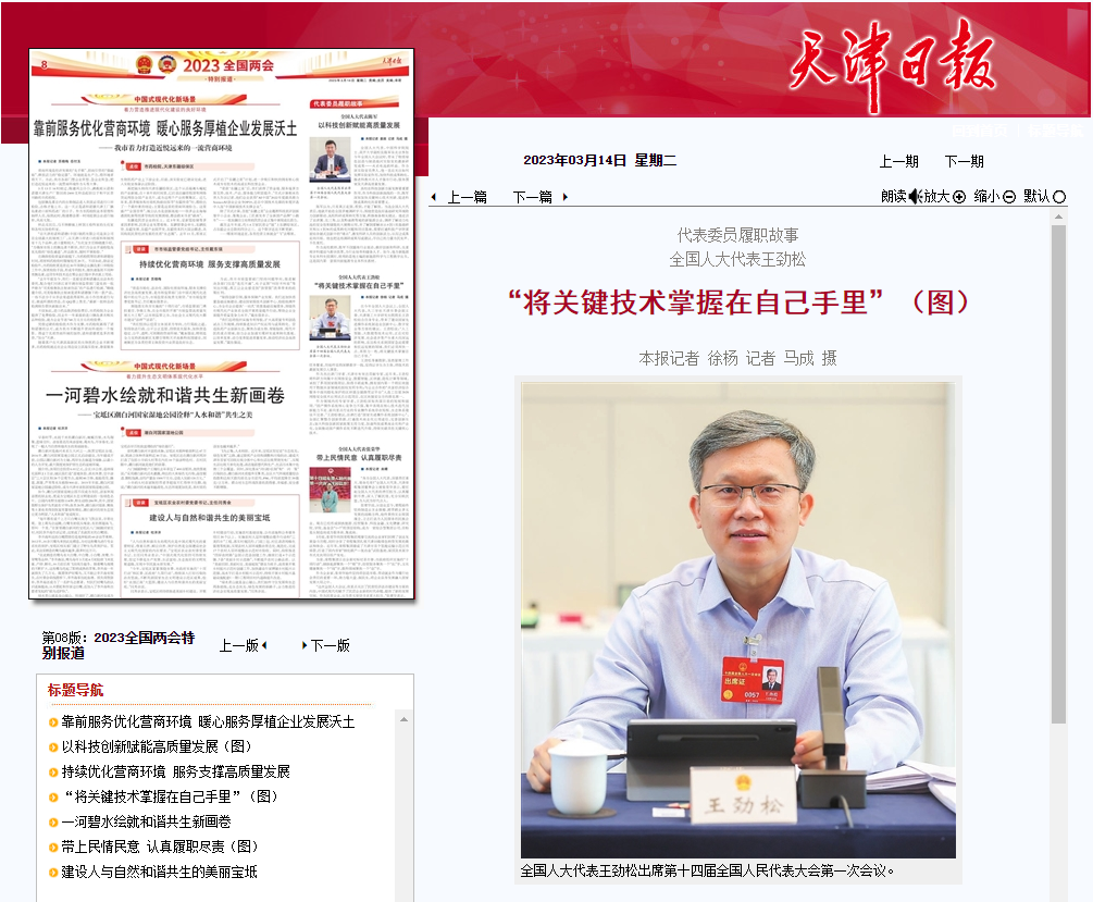 在今年全国人大会议上,全国人大代表,九三学社天津市委会副主委、新葡萄AMG官方网站研究生院院长王劲松结合自身专业,带来了建设国家先进操作系统制造业创新中心、数字安全等方面的建议。王劲松说:“人工智能、大数据等技术应用,正在对经济发展、社会进步等产生重大而深远的影响,在这些关系到国家急迫需要和长远发展的领域,我们必须再快一点、再努力一些,将关键技术掌握在自己手里。”