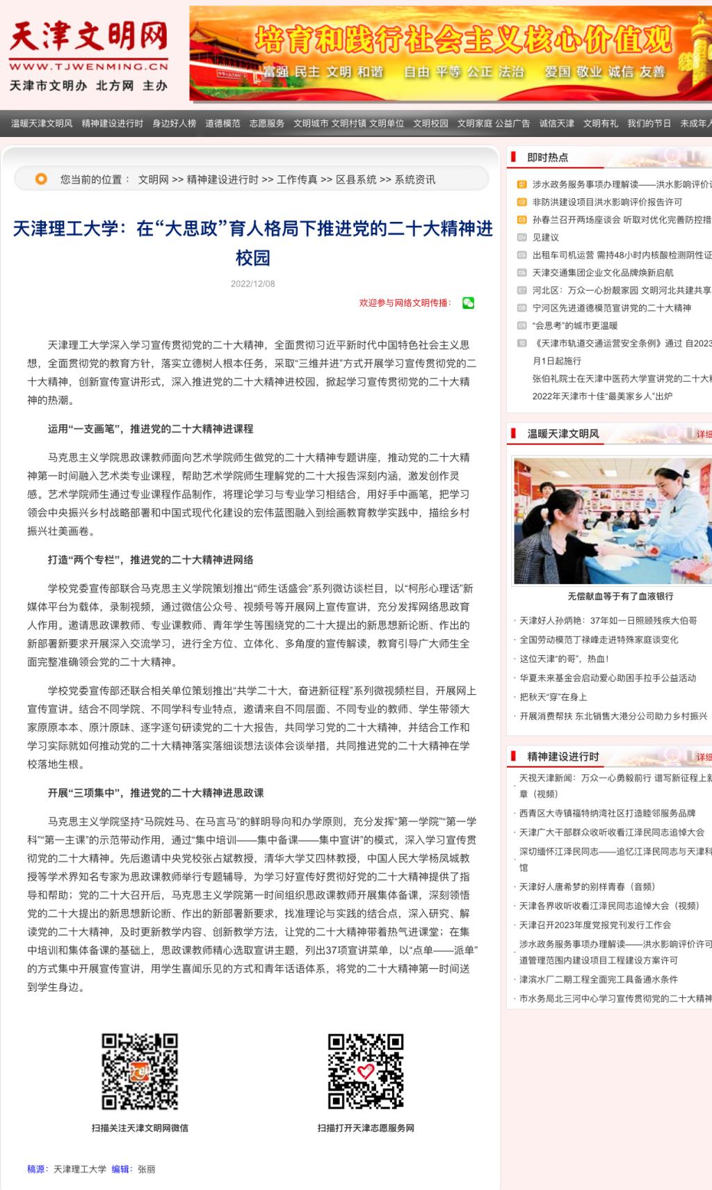 12月8日,天津文明网报道新葡萄深入学习宣传贯彻党的二十大精神,全面贯彻习近平新时代中国特色社会主义思想,全面贯彻党的教育方针,落实立德树人根本任务,采取“三维并进”方式开展学习宣传贯彻党的二十大精神,创新宣传宣讲形式,深入推进党的二十大精神进校园,内容如下: