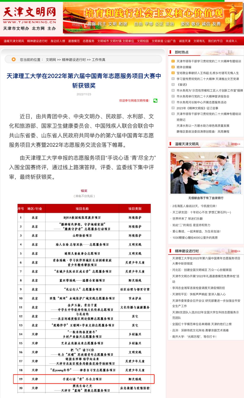 由新葡萄AMG官方网站申报的志愿服务项目“手说心语 ‘青’尽全力”入围全国赛终评,通过线上路演答辩,评委、监委线下集中评审,最终斩获银奖。