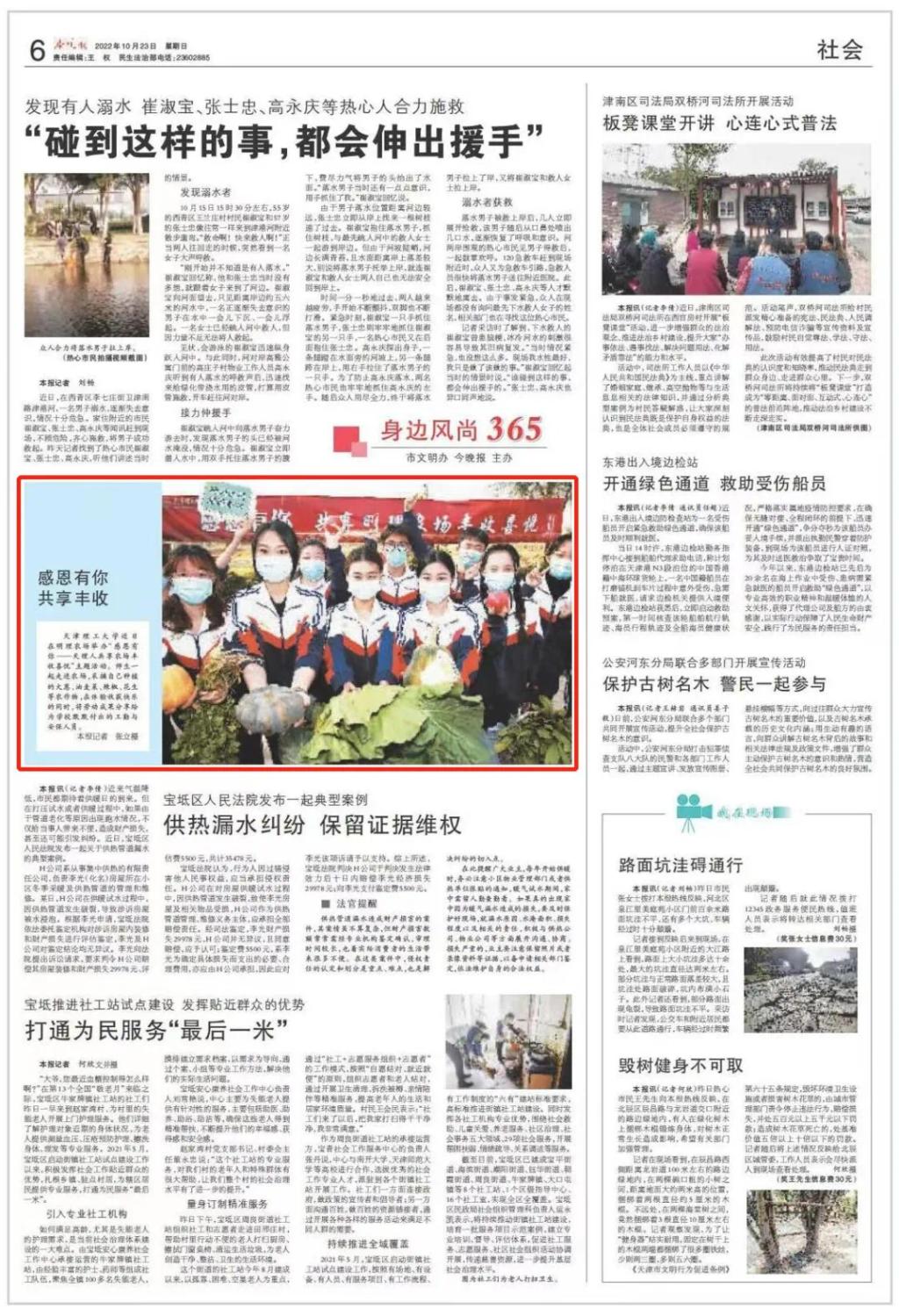 10月23日,《今晚报》第六版报道新葡萄近日在明理农场举办“感恩有你——新葡萄人共享农场丰收喜悦”主题活动,师生一起走进农场采摘自己种植的大葱、油麦菜、辣椒、花生等农作物,在体验收获快乐的同时,将劳动成果分享给为学校默默付出的工勤与安保人员,内容如下:
