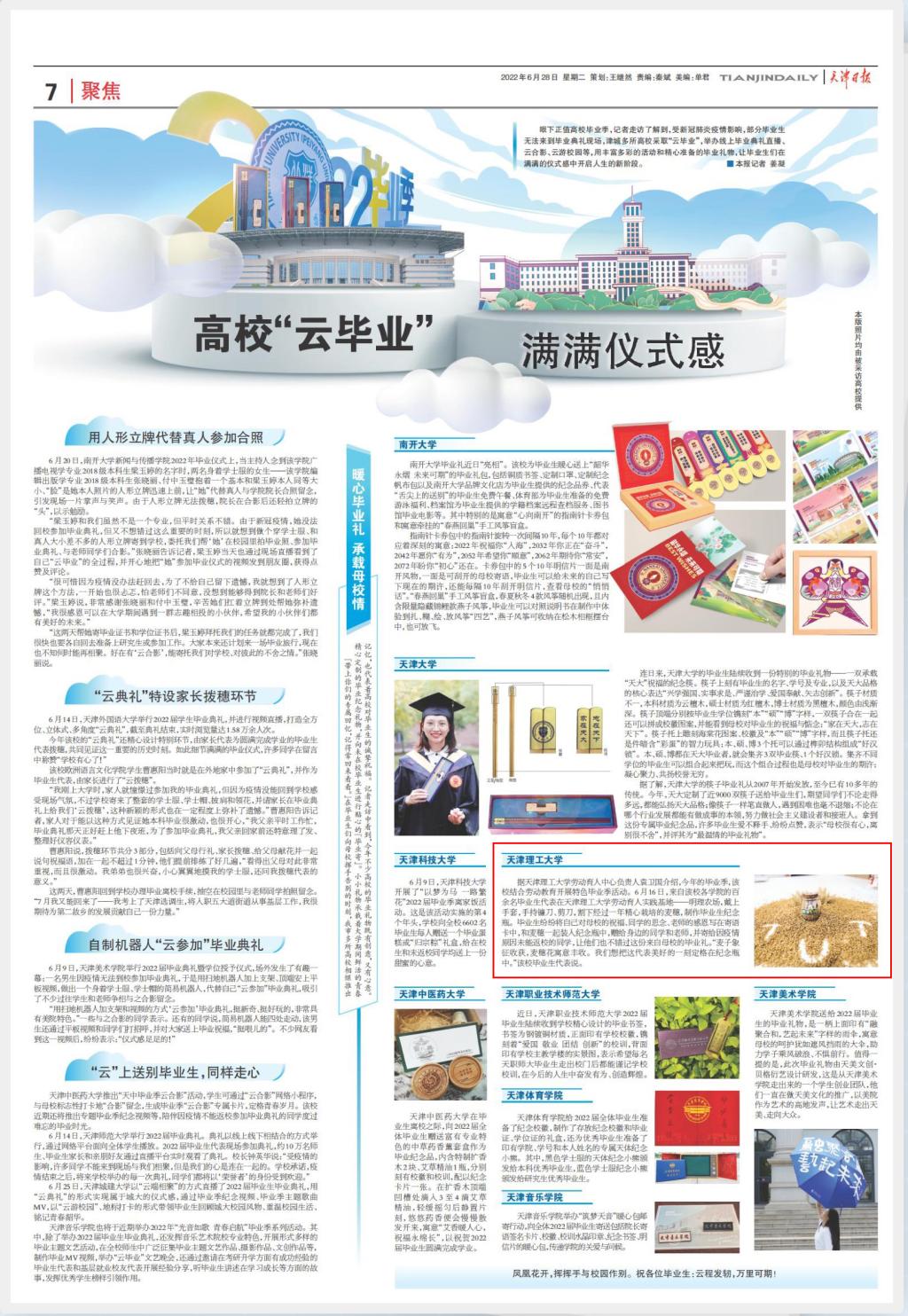 眼下正值高校毕业季,记者走访了解到,受新冠肺炎疫情影响,部分毕业生无法来到毕业典礼现场,津城多所高校采取“云毕业”,举办线上毕业典礼直播、云合影、云游校园等,用丰富多彩的活动和精心准备的毕业礼物,让毕业生们在满满的仪式感中开启人生的新阶段。