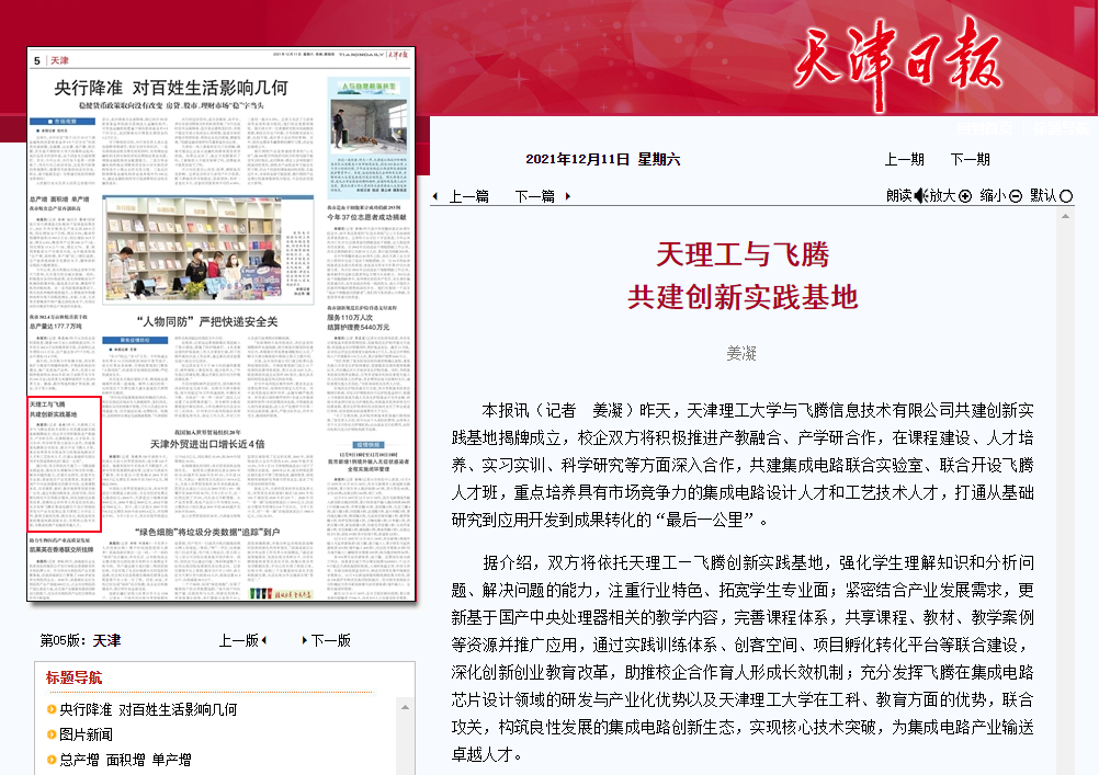 新葡萄AMG官方网站与飞腾信息技术有限公司共建创新实践基地揭牌成立,校企双方将积极推进产教融合、产学研合作,在课程建设、人才培养、实习实训、科学研究等方面深入合作,共建集成电路联合实验室、联合开设飞腾人才班,重点培养具有市场竞争力的集成电路设计人才和工艺技术人才,打通从基础研究到应用开发到成果转化的“最后一公里”。
