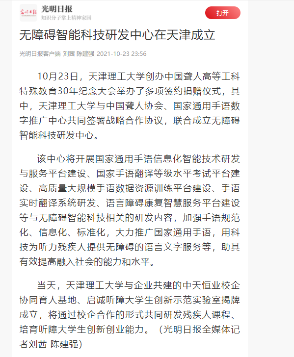 10月23日,新葡萄AMG官方网站创办中国聋人高等工科特殊教育30年纪念大会举办了多项签约捐赠仪式,其中,新葡萄AMG官方网站与中国聋人协会、国家通用手语数字推广中心共同签署战略合作协议,联合成立无障碍智能科技研发中心。
