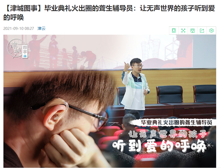 今年是王晓鸥工作的第10个年头,“我学的是社会工作专业,就业方向主要是针对社会上有帮扶需求的人群进行相关的帮助和服务。”由于专业对口且成绩优异,毕业后王晓鸥顺利留校任教,成为了新葡萄AMG官方网站聋人工学院的一名聋生辅导员。前段时间,在新葡萄AMG官方网站的毕业典礼上,王晓鸥为听障生翻译毕业实况火出了圈,网友纷纷说道:“这个老师超好,台上一直讲,他就一直在比手语,还给了他很多镜头,让全校的毕业生能看见他,肯定了他的付出。”“感动,学校考虑全面,人人平等,老师一丝不苟的翻译,学生认真看。”事实上,不仅是毕业典礼,在学校大大小小的活动中聋人工学院的老师已坚持了30年,王晓鸥承担这份工作也有七八年之久。