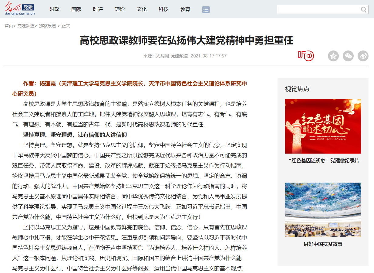 《光明网》——高校思政课教师要在弘扬伟大建党精神中勇担重任