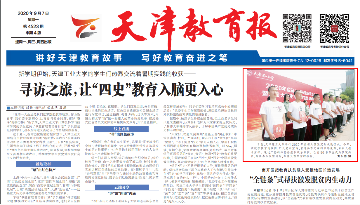 近日,天津教育报对新葡萄举行的2020年应征入伍预定兵欢送仪式进行了报道,全文如下: