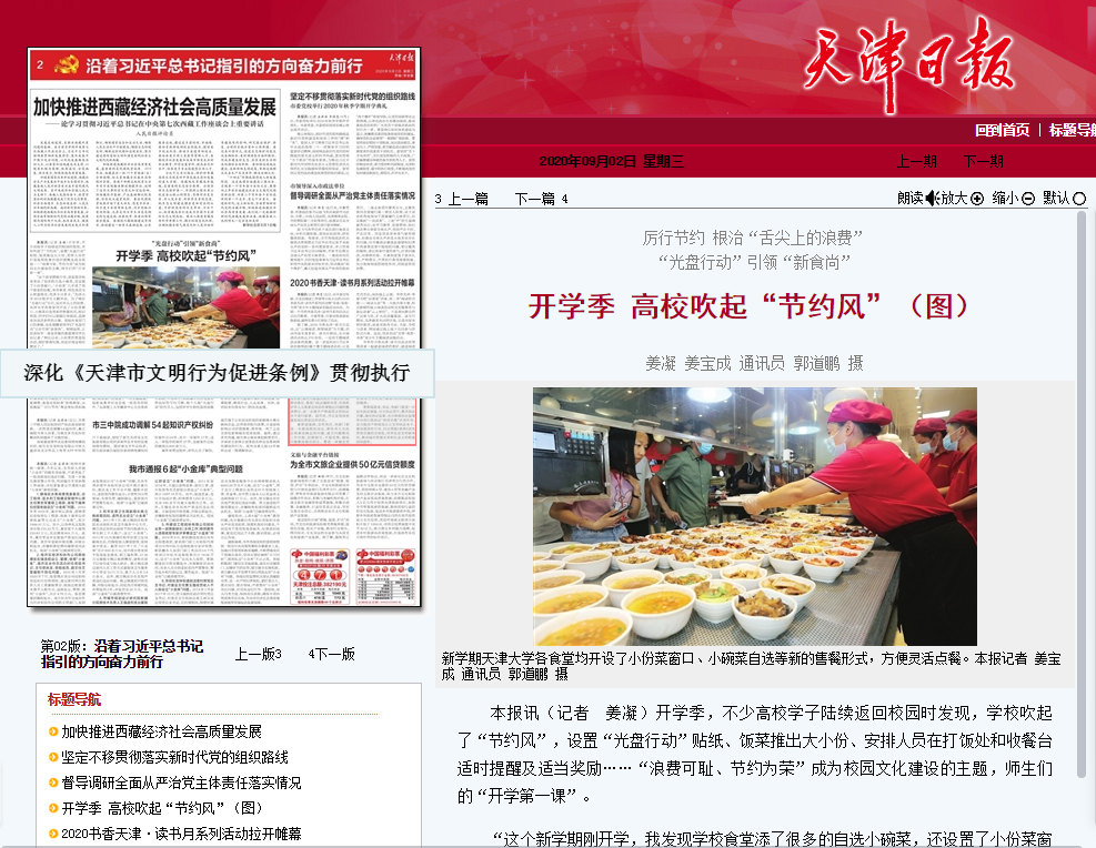 近日,天津日报对新葡萄开展的“光盘行动”进行了报道,全文如下: