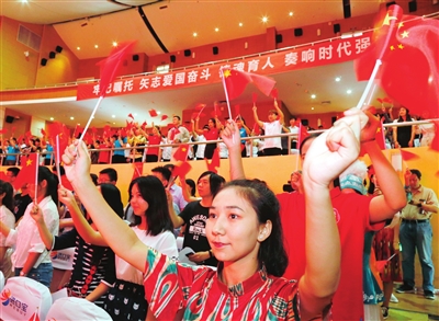 “我和我的祖国,一刻也不能分割,无论我走到哪里,都流出一首赞歌……”报告会最后,全场师生情不自禁地挥起手中的国旗,一起合唱《我和我的祖国》,歌声响彻整个礼堂……