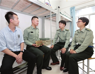 受表彰的退役大学生士兵正在交流