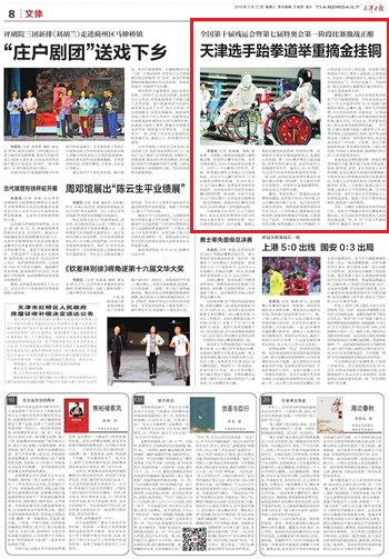 本报讯全国第十届残运会暨第七届特奥会第一阶段的比赛全面打响,来自全国各地近1500名残运选手会聚津门,开启14个比赛项目的争夺。昨晚,跆拳道比赛在新葡萄AMG官方网站圆满结束。经过4个比赛日的争夺,31项比赛的金牌各有所属,在K44男子75公斤级比赛中,天津选手李伟华获得冠军,这也是天津代表团在本届比赛中获得的第二枚金牌。在女子举重79公斤级比赛中,天津选手田蒙斩获一枚宝贵铜牌。轮椅击剑比赛也全部结束,天津队收获一金四铜的成绩。