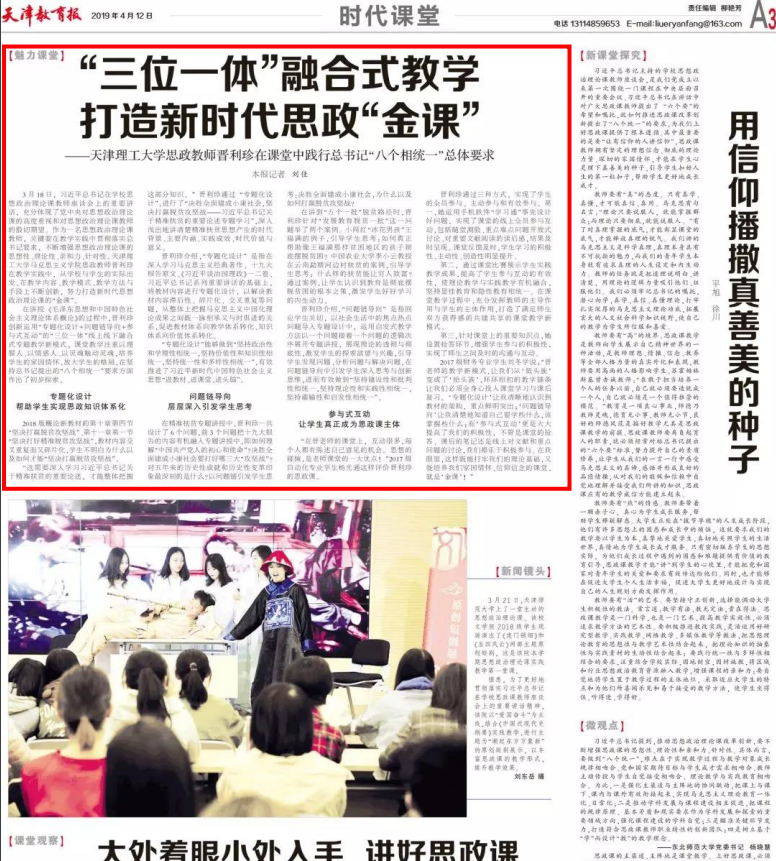 3月18日,习近平总书记在学校思想政治理论课教师座谈会上的重要讲话,充分体现了党中央对思想政治理论课的高度重视和对思想政治理论课教师的殷切期望。作为一名思想政治理论课教师,关键要在教学实践中贯彻落实总书记要求,不断增强思想政治理论课的思想性、理论性和亲和力、针对性。新葡萄AMG官方网站马克思主义学院思政教师晋利珍在教学实践中,从学校与学生的实际出发,在教学内容、教学模式、教学方法与手段上不断创新,努力打造新时代思想政治理论课的“金课”。